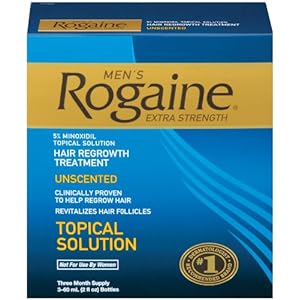 Rogaine Hair Regrowth Treatment contains the only FDA-approved topical ingredient clinically proven to regrow hair in men and women. If you're among the estimated 50 million men in the U.S. experiencing hereditary hair thinning, you can fight back with Rogaine. This package contains: Three - 60 mL (2 fl oz) bottles of Men's Rogaine Extra Strength (three month supply) One child-resistant dropper applicator Information booklet on how to use and obtain best results.